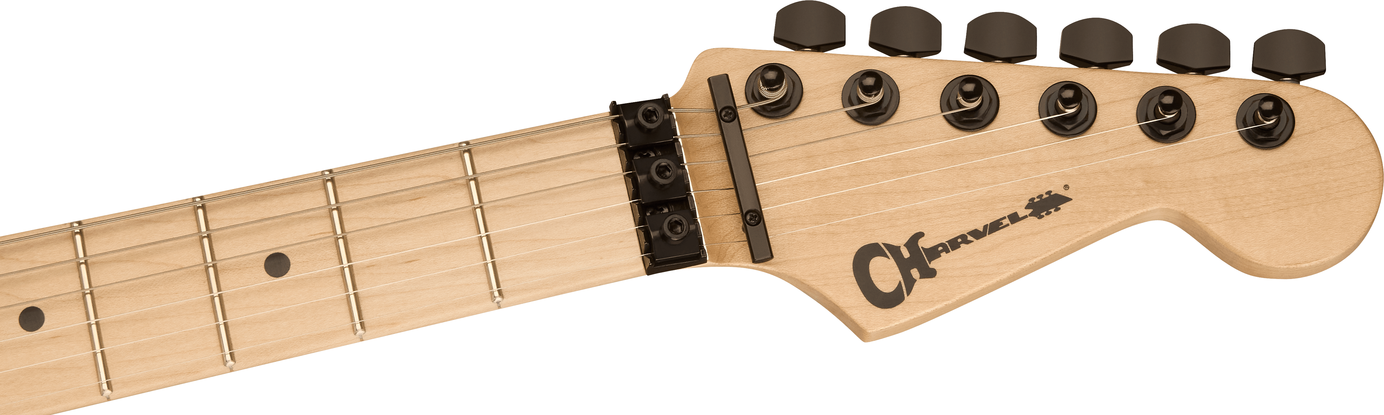Bridge Floyd Rose® 1000 Series Double-Locking Tremolo (Recessed) Hardware Finish Black Tremolo Arm Floyd Rose® 1000 Series Locking Tuning Machines Charvel®-Branded Die-Cast Pickguard 1-Ply Black Control Knobs Knurled Flat-Top Switch Tip Black Saddle Height Wrench N/A Neck