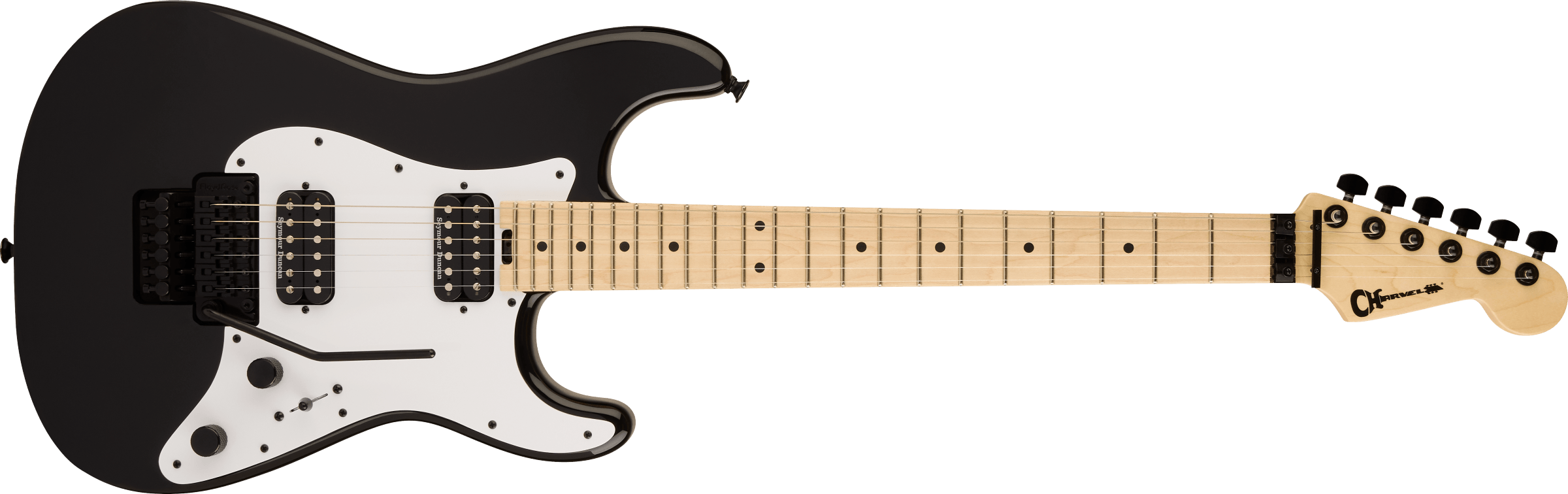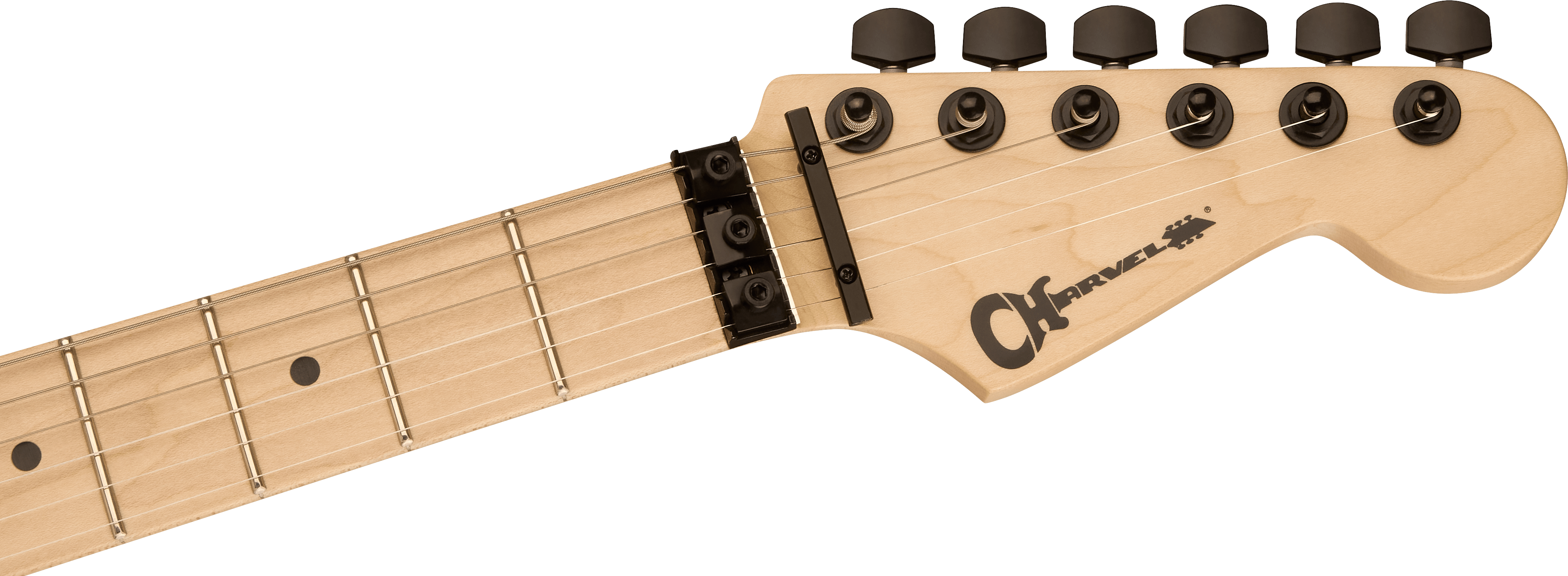 Bridge Floyd Rose® 1000 Series Double-Locking Tremolo (Recessed) Hardware Finish Black Tremolo Arm Floyd Rose® 1000 Series Locking Tuning Machines Charvel®-Branded Die-Cast Pickguard 1-Ply Black Control Knobs Knurled Flat-Top Switch Tip Black Saddle Height Wrench N/A Neck