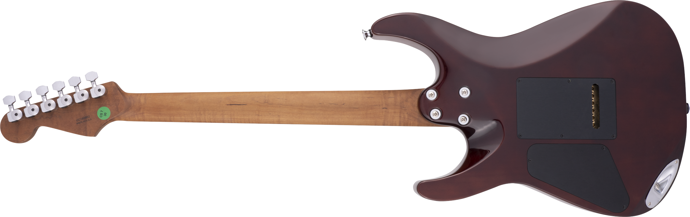 Bridge Gotoh® Custom 510 Tremolo Bridge with Brass Block and Titanium Saddles Hardware Finish Chrome Tremolo Arm Gotoh® Tuning Machines Sperzel® Die-Cast Locking Pickguard None Control Knobs Stratocaster®-Style Skirt Switch Tip Black Neck