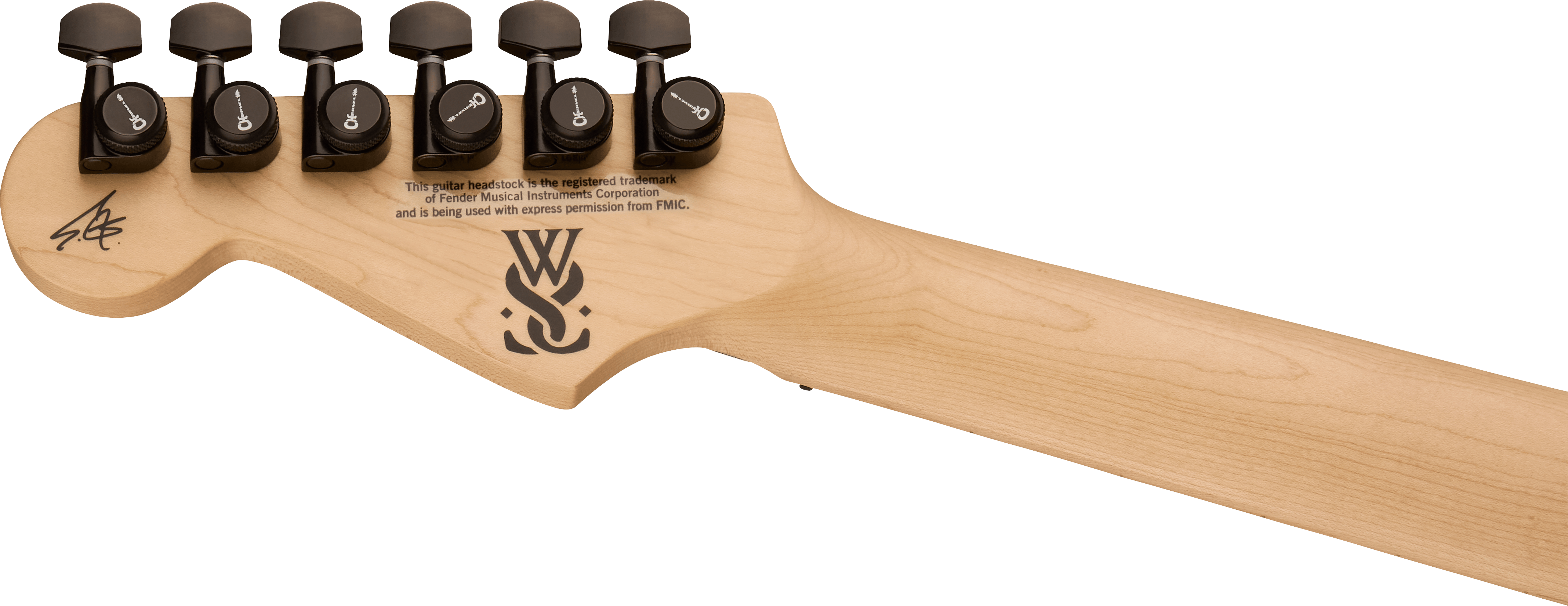 Neck Material Maple Neck Construction Bolt-On with Graphite Reinforcement Neck Finish Hand-Rubbed Satin Urethane Neck Shape Speed Neck with Rolled Fingerboard Edges Neck Binding None - Rolled Fingerboard Edges Scale Length 25.5" (648 mm) Fingerboard Radius 12"-16" Compound Radius (304.8 mm to 406.4 mm) Fingerboard Material Maple Number of Frets 22 Fret Size Jumbo Nut Material Graph Tech TUSQ XL Nut Width 1.6875" (42.86 mm) Position Inlays None Side Dots Luminlay® Truss Rod Nut Heel-Mount Truss Rod Adjustment Wheel String Trees Fender® Standard String Guide Headstock Licensed Fender® Stratocaster® Neck Plate 4-Bolt Serialized Miscellaneous