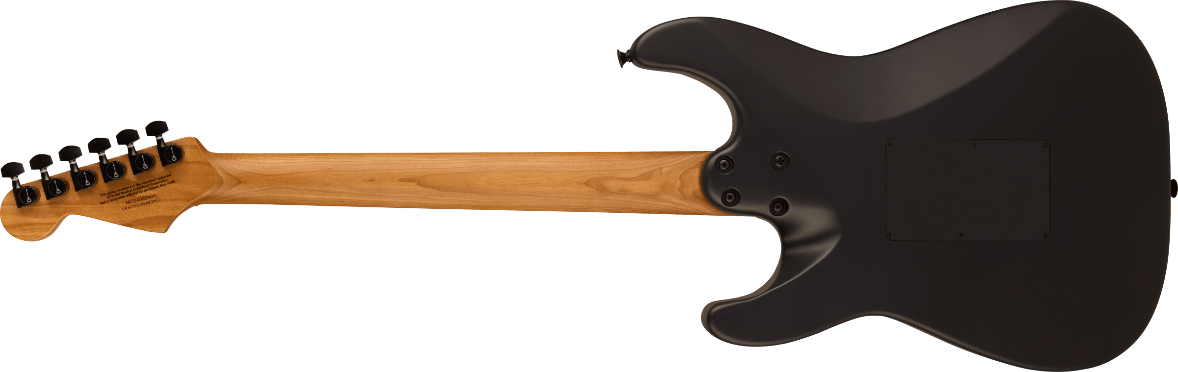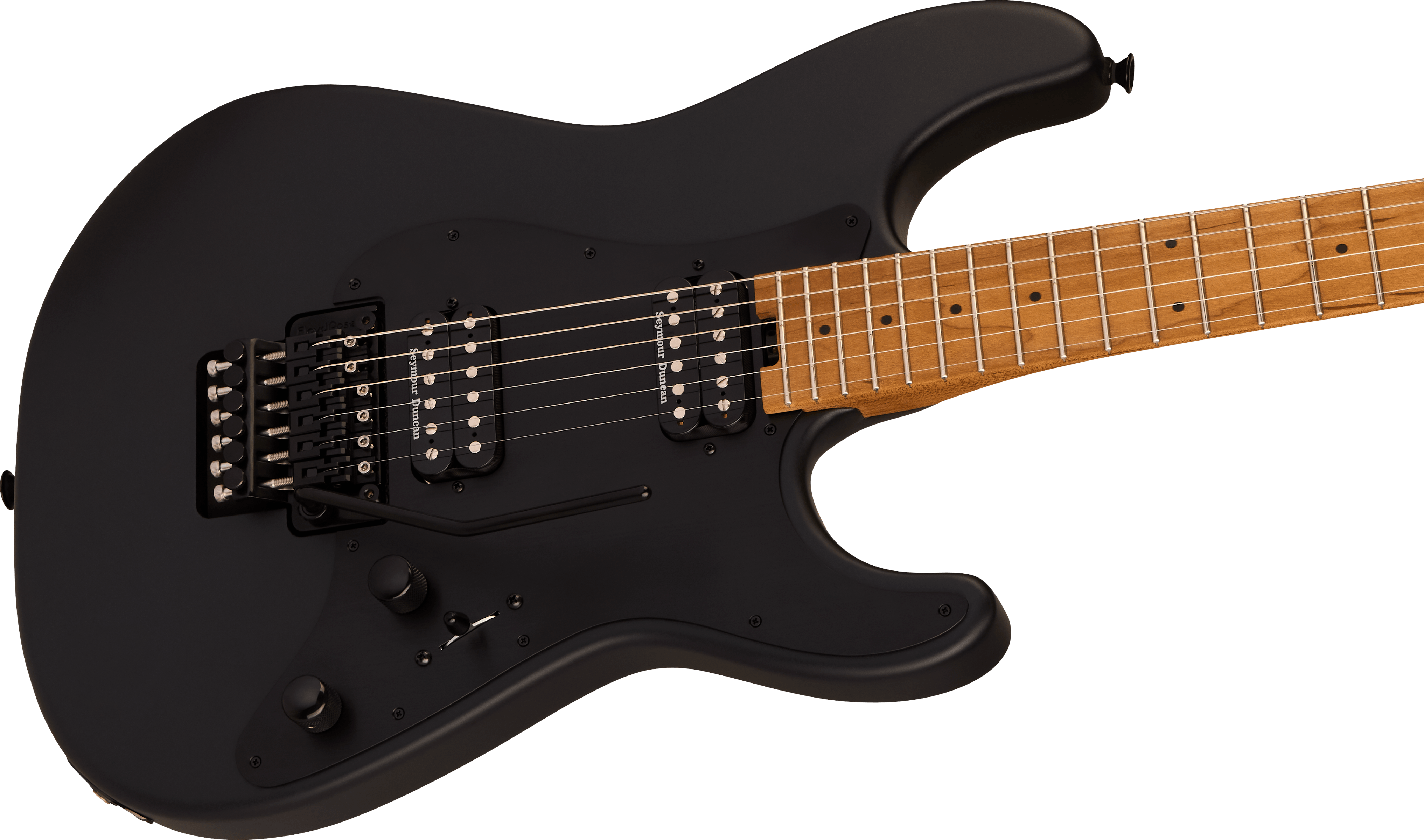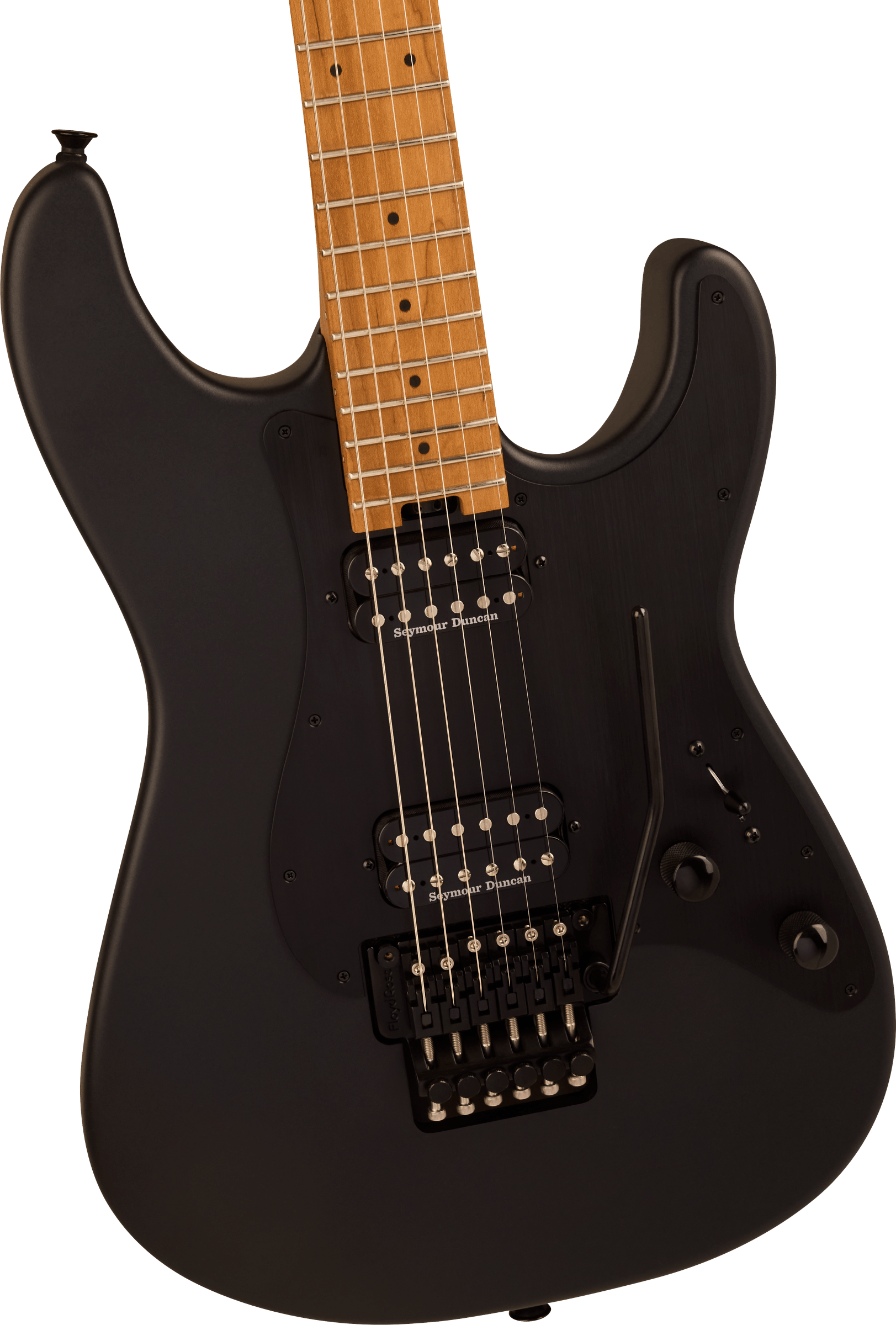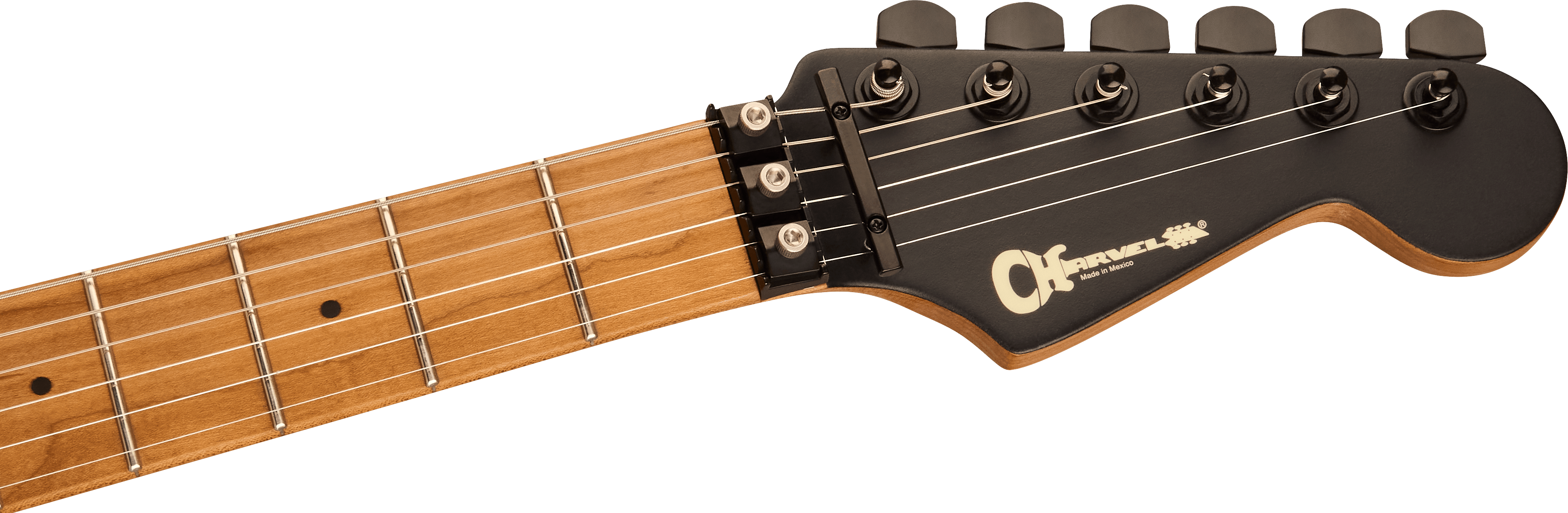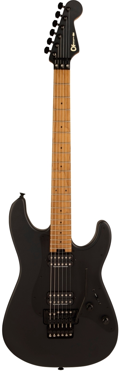 Bridge Floyd Rose® 1500 Series Double-Locking Tremolo Hardware Finish Black Tremolo Arm Floyd Rose® 1500 Series Locking Tuning Machines Charvel®-Branded Die-Cast Pickguard 1-Ply Black Anodized Aluminum Control Knobs Dome-Style Switch Tip Black Neck