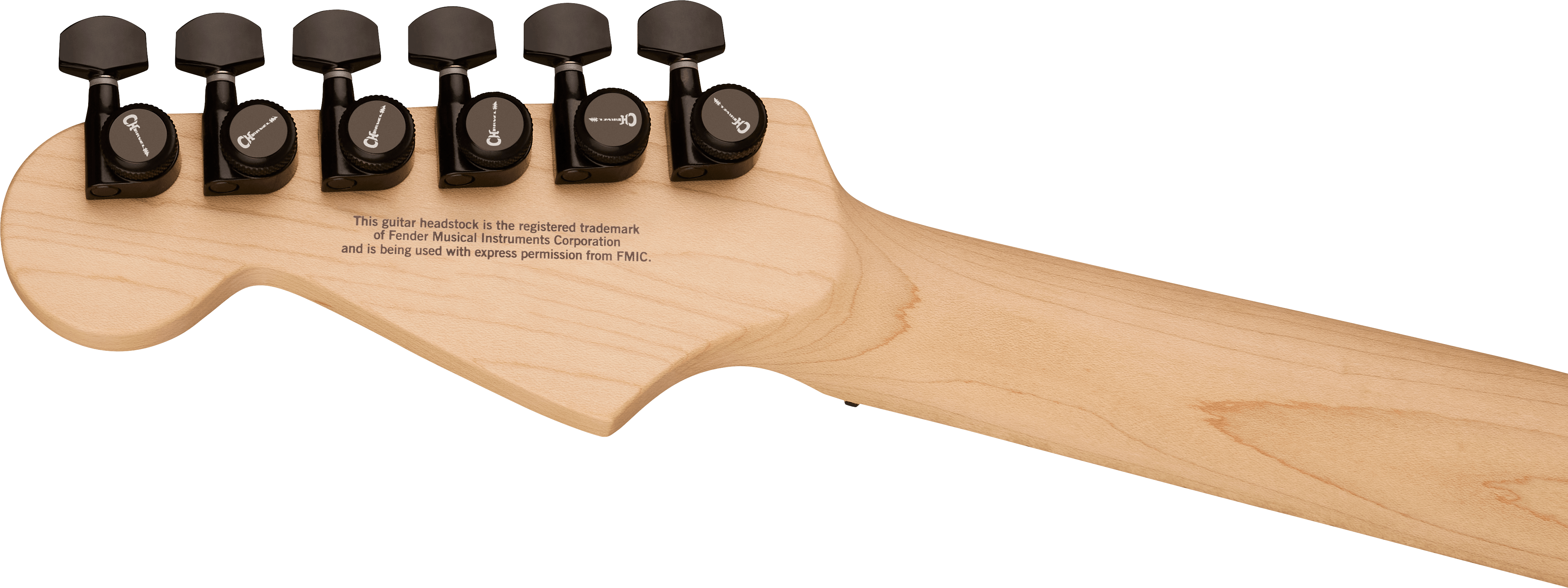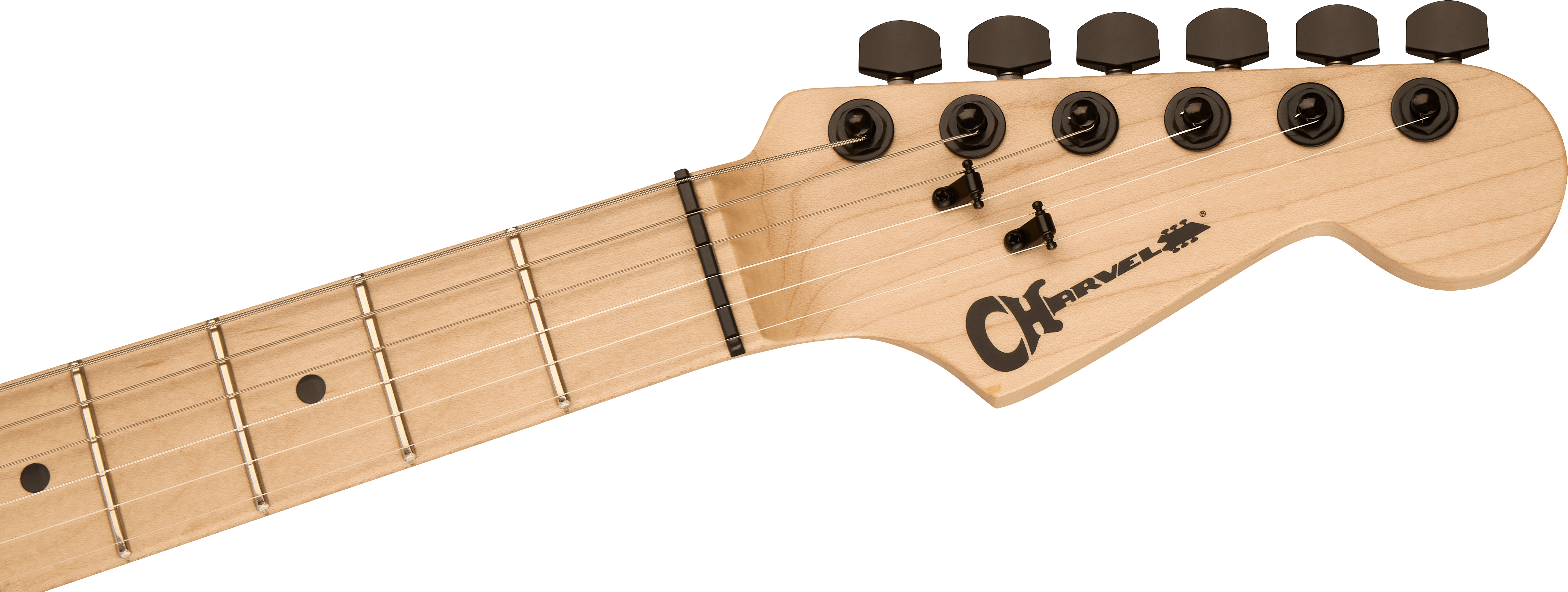 Bridge Charvel® HT6 String-Through-Body Hardtail Hardware Finish Black Tuning Machines Charvel® Sealed Die-Cast Locking Pickguard 1-Ply Black Control Knobs Knurled Flat-Top Switch Tip Black Saddle Height Wrench Yes Neck