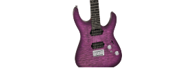 Loaded with premium features, this Pro-Mod Plus Dinky® DK24 HT model features a sleek Dinky® body constructed from basswood with a quilt maple top, sculpted shredder's cut heel and scalloped lower back bout for seamless access to the upper registers. The bolt-on caramelized maple neck features graphite reinforcement for rock-solid stability, a satin natural finish on the back of the neck for sublime playability, and a conveniently located heel-mount truss rod adjustment wheel for neck relief tweaks on the fly. Designed for speed, the 12"-16" compound radius ebony fingerboard features comfortable rolled edges, 24 stainless steel jumbo frets and Luminlay® side-dots for enhanced visibility in low-light conditions.