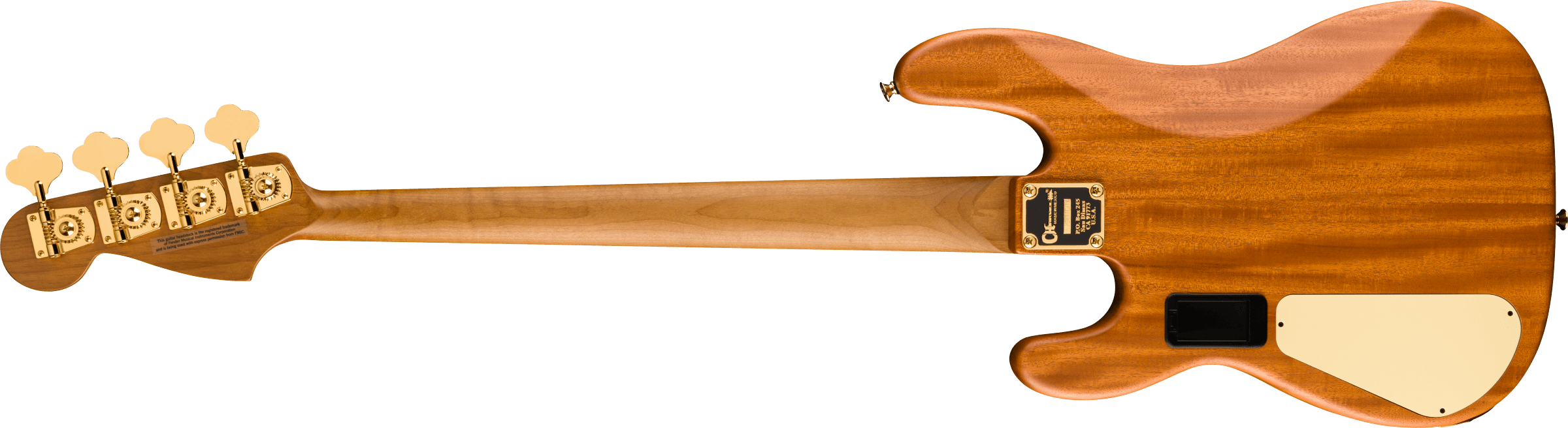 This 4-string bass is presented in a Natural Mahogany and Satin Ferrari Red finishes with chrome hardware, cream pickup covers and licensed Fender® Precision Bass® headstock shape.