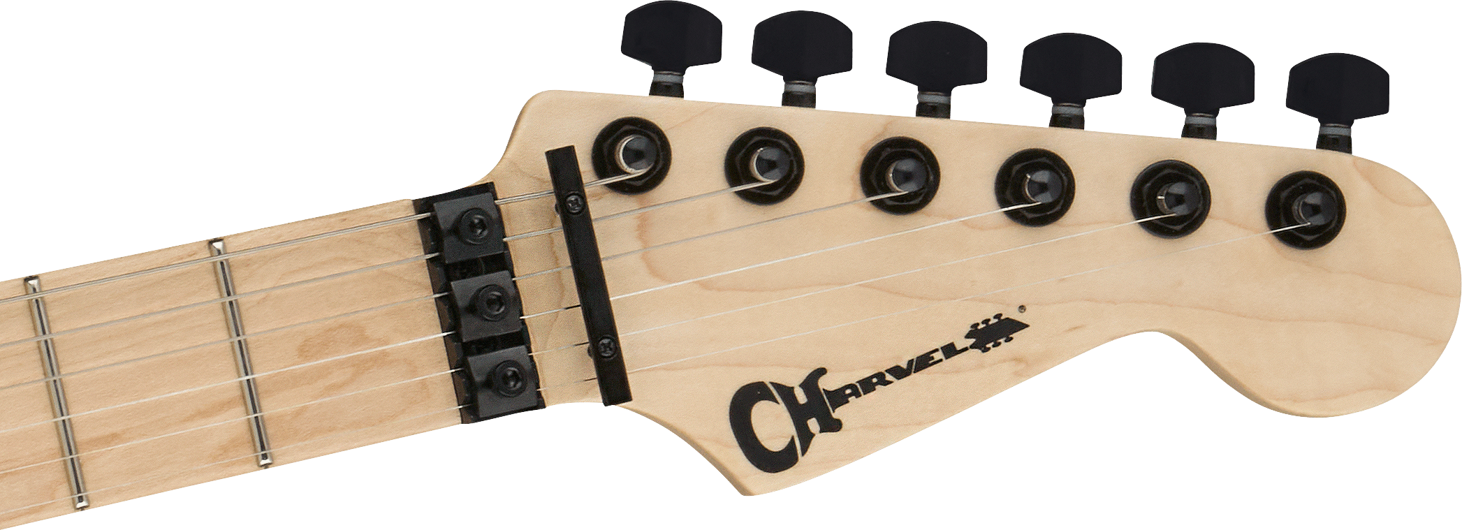 Bridge Floyd Rose® 1000 Series Double-Locking Tremolo (Recessed) Hardware Finish Black Tremolo Arm Floyd Rose® FRT O1000 Locking Tuning Machines Charvel®-Branded Die-Cast Pickguard None Control Knobs Knurled Flat-Top Switch Tip Black Neck